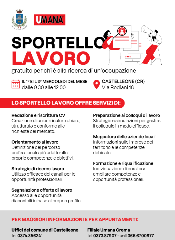 Ogni 1° e 3°  mercoledì dalle 9.30 alle 12.00 a Castelleone in Via Rodiani 16.